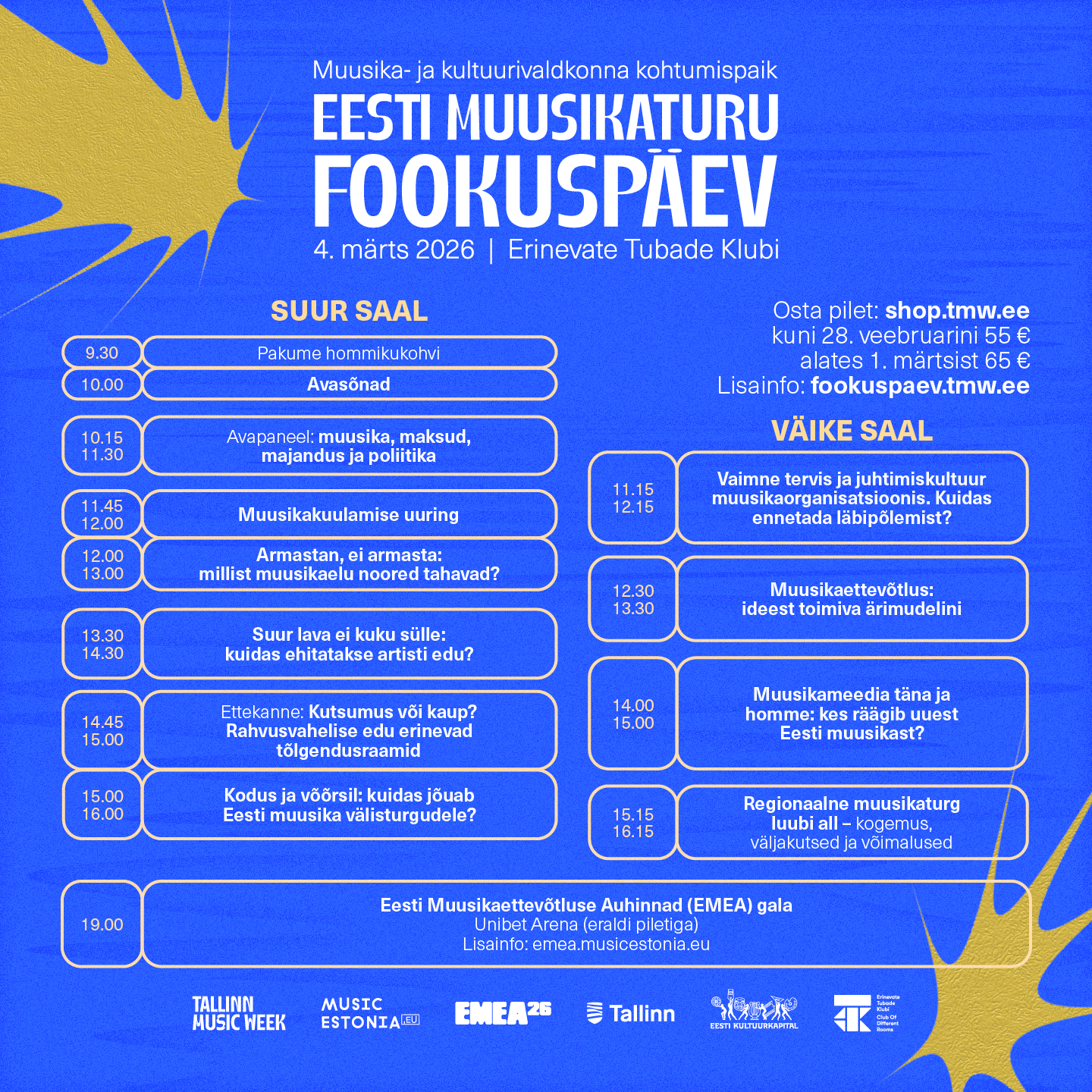 Fookuspäeva ja EMEA ühispass maksab 130 eurot. Kõik hinnad sisaldavad käibemaksu.